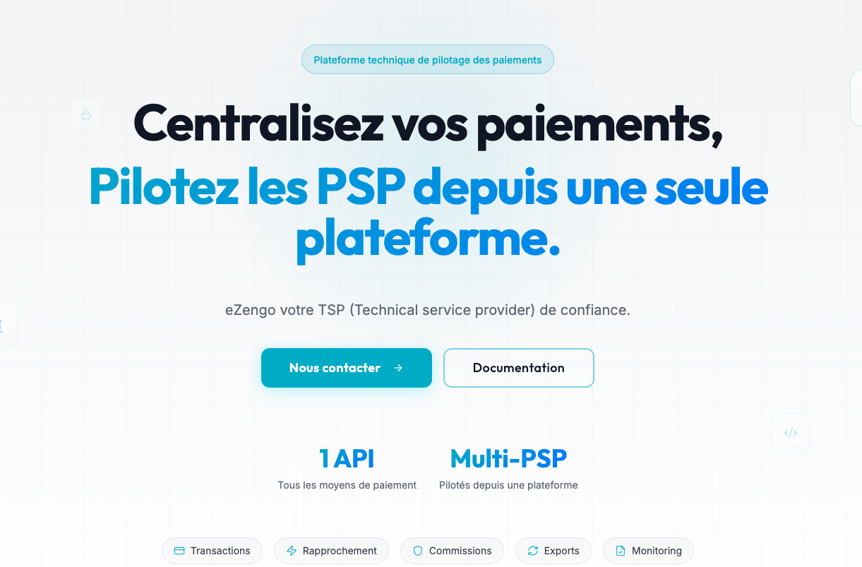 Plateforme d'orchestration des paiements. eZengo centralise et sécurise les flux financiers multi-PSP pour les marchands et les PSP.
